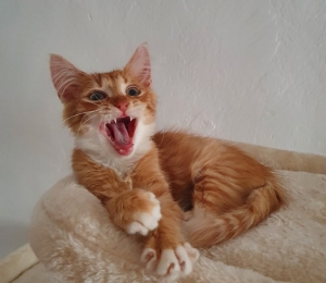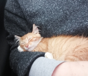Asami on 4 kuune emane imeilus kassilaps. Tal on särtsakas punane kasukas ja temast saab ilmselt poolpikakarvaline kass. Ta on väga julge, aga ka väga memmekas. See kass vajab kindlasti palju-palju tähelepanu, ta tahab koguaeg sülle ja on väga häälekas, kui ta tähelepanu ei saa. Ühel õhtul tegi hoiukodu endale süüa ja ta seni kaua mäugus inimesw kõrval kuni ta sülle sai ja siis tuli temaga koos süüa edasi teha. Ta amastab mängida ja on tõesti väga sõbralik kiisu. Magada tahab ta ka kaisus ja kuskil rinna peal. Ta otsib kodu, kus ta ei peaks terve päeva üksinda veetma. Seega võiks enamuse päevast keegi kodus olla ja ka lapsed meeldiks talle väga. Ta on ju nii seltsiva hingega, et üksinda olemine teeks ta lihtsalt kurvaks.