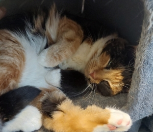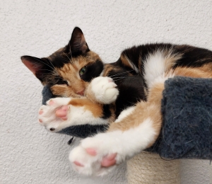 Kui Sa otsid endale kiisut, kellele oled valmis aega andma ja kellega koos edasi kasvama, siis Astra on just Sinule mõeldud kiisu! Ta on vahva kolmevärvilise kasukaga kiisutüdruk. Temasse on segatud nii musta kui valget ja kaunistuseks veel oranžikat-pruunigi. Ja kui armas pisike roosa ninanöps tal on! Astra on nagu pisike jänkulaps. Ta on veel arglik ja võib pugeda aknanurka peitu. Aga veel turvalisem on varjuda mõne teise kiisu kaisus või külje all. Kindlasti oleks Astrale suureks toeks, kui teda ootaks kodus ees teinegi kiisu, aga see pole kõige olulisem. Tähtsam on see, et see malbe kiisu üldse kellelegi silma jääks.