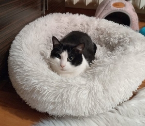 Bellal on kaunis must-valge kasukas ja ühel silmal sarvkesta vigastus, mis teda absoluutselt ei sega. Suuruselt on Bella alles pisike kassipoeg – igast küljest eriti armas. Ta on steriliseeritud, vaktsineeritud, kiibistatud, saanud parasiitide vastase tõrje ja valmis kohe oma päriskoju kolima.