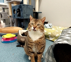 Kleo on seltsiv ja uudishimulik poiss ning puurib kõiki kassitoa kahejalgseid oma kahe tõllarattast silmaga. Ta on selline kass, kellele vaatad lihtsalt otsa ja juba süda sulab ning suunurgad tõusevad ülespoole. Kleo on meie rõõmupall. (Kleo palub öelda, et varsti laadib tema sotsiaalmeedia mänedžer paremad pildid ka üles, et rõõmu ka nendega jagada, kel ei ole võimalik Kleole kassituppa külla tulla.)