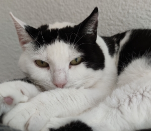 See armas kiisu kolis Pesaleidja varjupaika Paljasaare varjupaigast 21. märtsil 2023. Kristiina on hetkel veel arglik ja vajab aega inimesega harjumiseks. Ta on ka üsna nooruke, 2022 aastal sündinud.