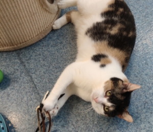 Lilleke on avastanud mängimisrõõmud ja naudib pulgamänguasjadega jahtimist väga-väga! Samuti võtab ta vastu sinult maiusi, kui sa neid pakud ja usume, et ega kaua ei lähe, kui ta on nõus ka pai vastu neid vahetama.