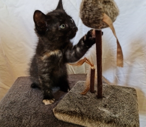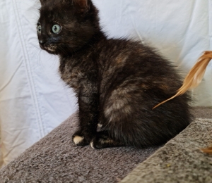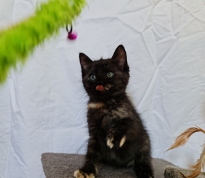 Meshuggah on meid algusest peale üllatanud. Kõigepealt, kui ta 26.04.2021 Pesaleidja kassitoas sündis, arvati, et kassike on isane. Mõne aja pärast saime aru, et see ei vasta tõele. Teine üllatus tuli, välimusega. Algselt arvasime, et tegu on musta kassikesega, aga meie suureks üllatuseks koorus vlja hoopis kolmevärviline iludus. Nimelt varbad on tal pruunid, lõua all on nii halli kui ka pruuni ja selja peal on pruunid laigud, mis kohe ei pruugigi silma jääda.