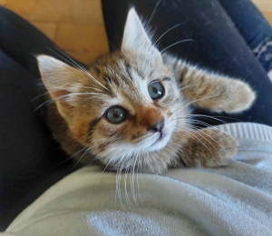 Muffin on aprilli lõpupoole sündinud aktiivne kiisutüdruk, kes jõudis Pesaleidja hoole alla 16.06. Peagi kolis ta hoiukoju, kus enne koju kolimist veidi kosuda.