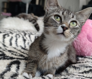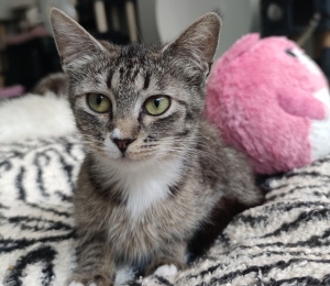 Pinky saabus Pesaleidjasse 14.04.23 Lääne-Harju vallast. Ta on arvatavasti sündinud 2023.aasta alguses, seega on tegu alles täitsa beebiga. Pinky on nii pisike, et kassitoas ringi kõndides võib ta alguses märkamata jääda. Aga kui hoolega vaadata, siis võib teda näha mõnes pesas või toanurgas magusalt magamas ja vaikselt unise pilguga kõike uurimas.