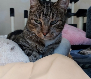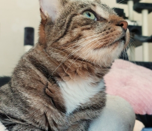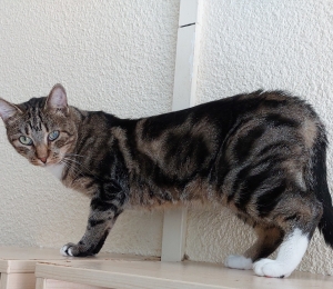 Rufus kolis Pesaleidjasse 30.04.2022 Raasikult. Poisil on ilus triibuline kasukas ja väikesed valged varvassokid. Samuti on tal vasak silm veidi hägune vanast sarvkesta vigastusest, mis ei häiri teda üldse ja tegemist on pigem niisama iluveaga. Sünnikuupäev võiks Rufusel olla hinnaguliselt 2020. aasta maikuu, ehk praeguseks on poiss umbes kahe ja poole aastane.