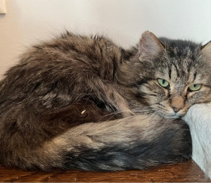 See vahva paksu kährikukasukaga suur vaikne kiisupoiss on Sebastian! Ta on küll kogukas täiskasvanud kass, aga süles on nagu pisike malbe kiisupupojake.
