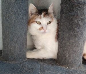 Susanna tuli meile Narva Loomakaitsest 1.märtsil 2023. Ta on imearmas kirju kasukaga kiisupreili, kes on nii väike ja tagasihoidlik, et võib lausa märkamata jääda teiste kasside seas. Tegelikkuses on tegu paimaia tüdrukuga, kes hirmsasti tahaks oma pesakest, sest suures toas on ta veidi stressis teiste kassidega koos elamisest.