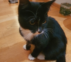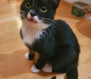 Toby on Viljandist pärit mustvalge nurrumootor. Toby pole vanuselt enam imetilluke kiisupoeg, vaid just parajas suuruses, et kogemata mitte peale astuda. Täiskasvanud kassi mõõtude saavutamiseks on tal siiski veel palju vaja süüa. Toby on täiesti taltsas ja sõbralik ning teda on võimalik igal hetkel sülle võtta. Ülekõige armastabki Toby inimese süles istumist ning vastu põske nühkimisega läheb Toby lausa üle piiride sõbralikuks. Loomulikult armastab ta ka väga mängimist. Hetke lemmikuks on Tobyl teise kassipojaga müramine, aga ka pallid ja suletutid on talle väga armsad. Toby oskas juba hoiukodusse tulles kasutada liivakasti.